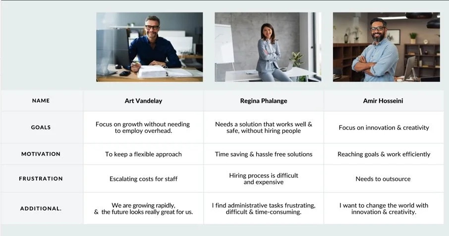 To better understand and empathize with the users’ needs and pain points, we created multiple user personas based on the personas we got from Cool Company combined with users from our own user tests.